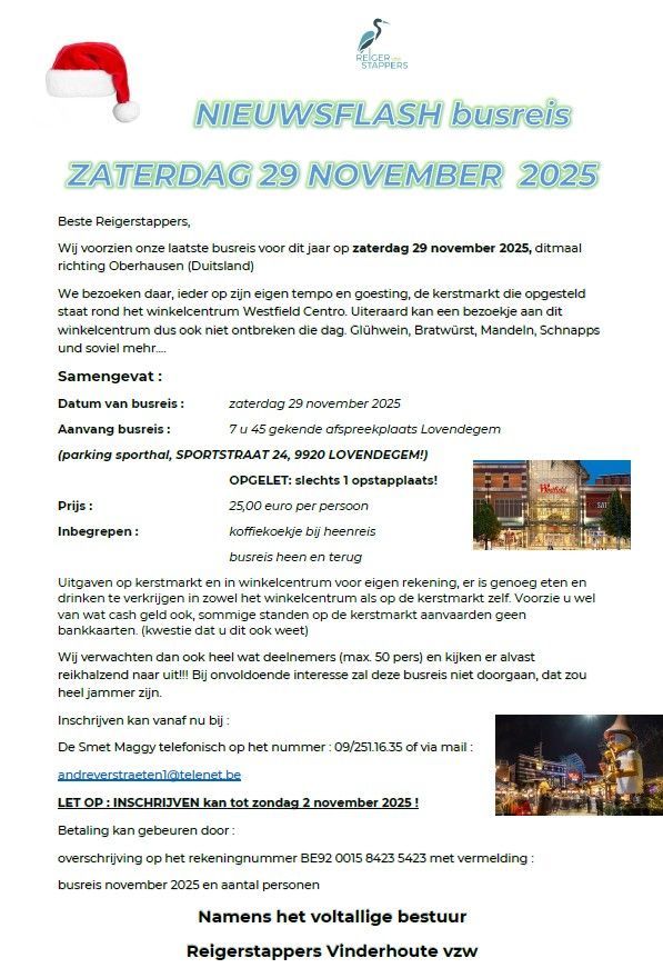 Bezoek aan kerstmarkt - info zie aparte nieuwsflash