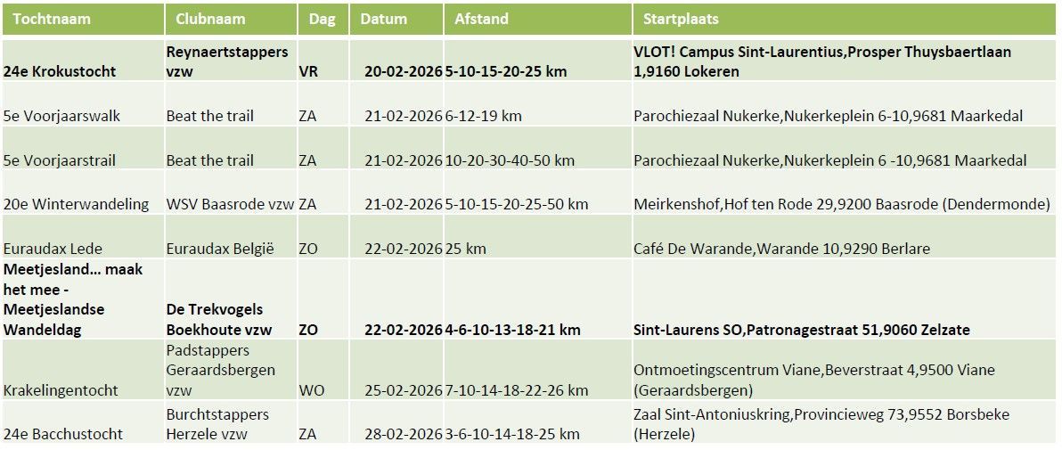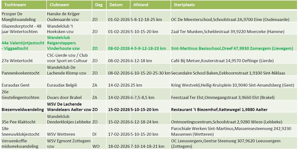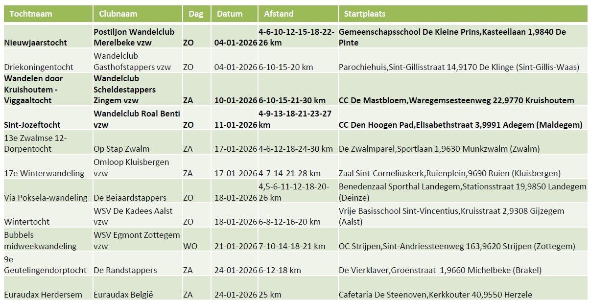 Maandelijkse wandeltochten