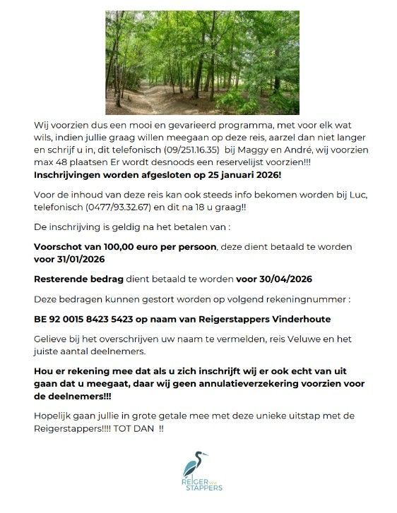 Meer info zie flyer over dit weekend weg met de Reigerstappers